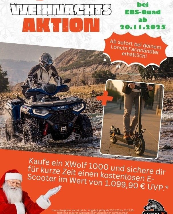 Mit dem neuen Loncin XWolf 1000 ABS erlebst Du Offroad-Performance auf einem völlig neuen Level! Ob für extreme Abenteuer, fordernde Arbeitseinsätze oder das pure Vergnügen - unser Neuzugang bietet Dir alles, was Du von einem Premium-ATV erwartest. Erlebe Fahrspaß auf höchstem Niveau und geh an Deine Grenzen - der XWolf 1000 ABS wird Dich nicht enttäuschen!* Hubraum: 976 cm