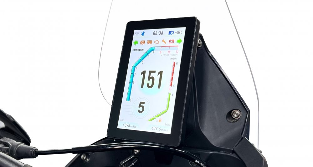 Mit einem hochfesten Stahl-Zentralrohrrahmen, langhubigen Federungen, 21- und 18-Rädern und einem großen vertikalen 7-TFT-Bildschirm mit Mirror Link-Technologie ist diese Maschine bereit, Kilometer zu fressen, während alles unter Kontrolle bleibt.